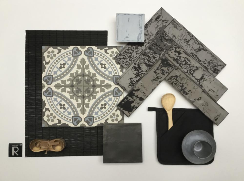 BEL AIR CALLA & ATELIER 6.2X25 NOIR GLOSSY & ATELIER 10X10 BLEU LUMIERE GLOSSY & ATELIER 14X14 NOIR MAT